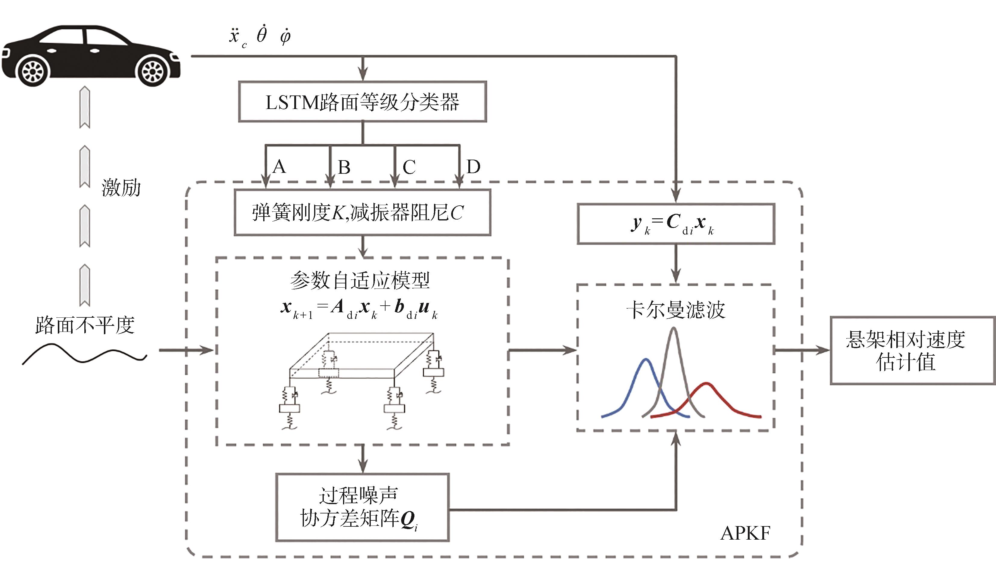 关键词: 路面分级, 悬架参数自适应, 卡尔曼滤波, 状态估计